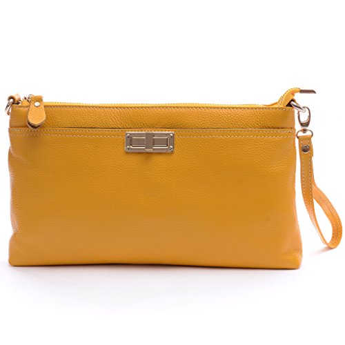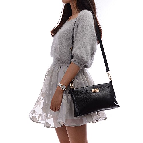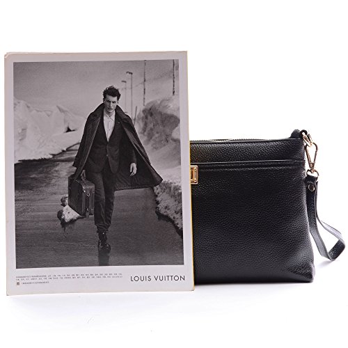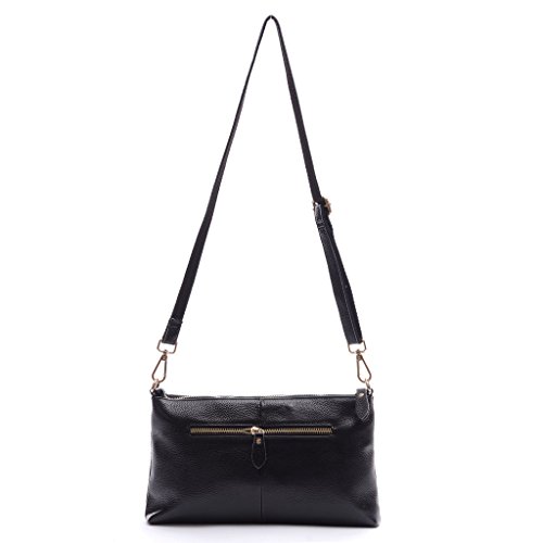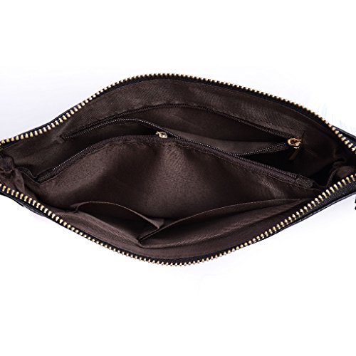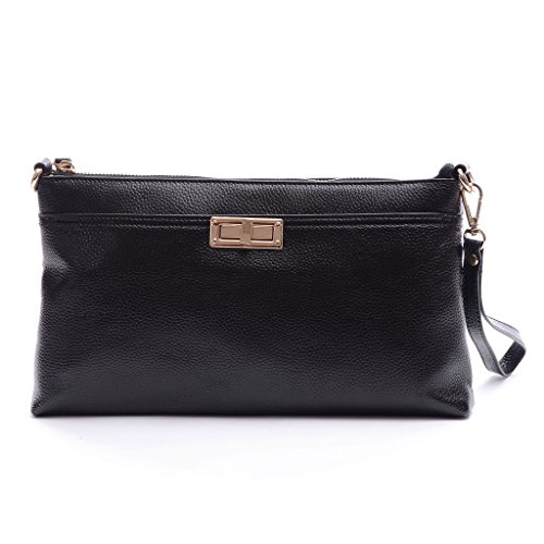 Clutch Purse,YOUNA Vintage Genuine Leather Envelop Clutch Purse For Women With Wrist&Shoulder Strap Black