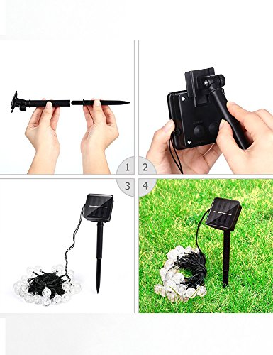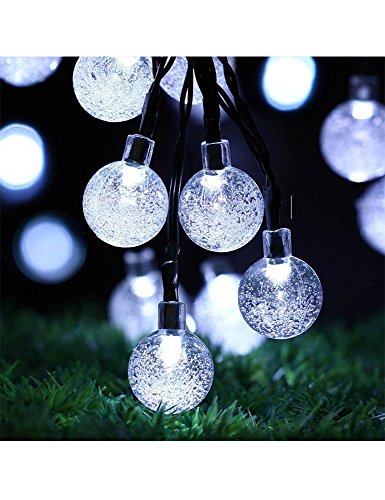 - Outdoor Party Lights String - All the bubble crystal balls are colorless and transparent, but plus the beautiful color lights and different flashing modes, this garden solar lights will light up your house, garden, patio, yard, corridor, party stage, Christmas tree and so on. It will be the best atmosphere lights for indoor/outdoor decoration.