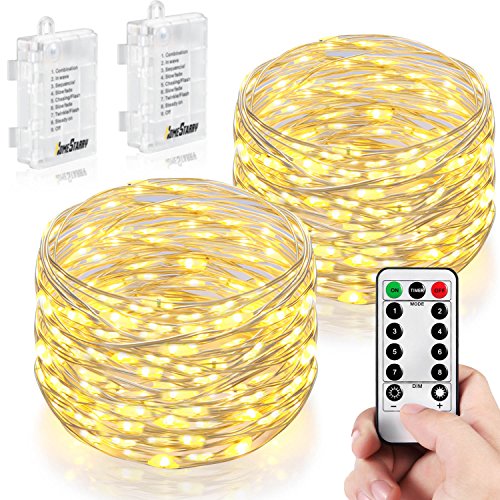 2 Pack String Lights, Battery Operated 66 LED 16.4FT Silver Wire 8 Modes Twinkling Fairy lights with Remote Waterproof for Indoor Bedroom Wedding Party Decor Patio Christmas Lights (Warm White)