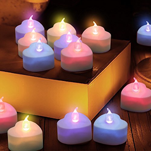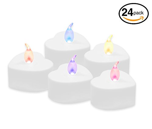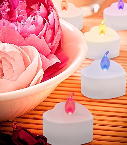 Heart Shape LED Candle Colored Bulb Flickering Flame Battery Operated Realistic looking candles great for Valentines and Holidays