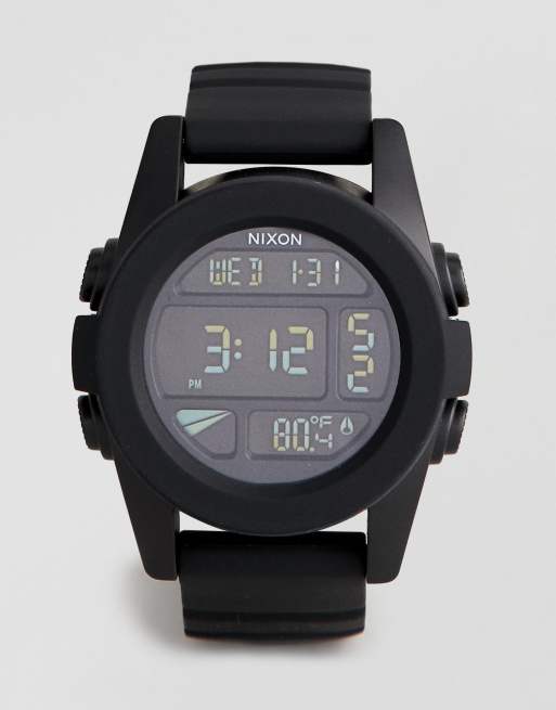 Nixon A197 The Unit Digital Silicone Watch In Black