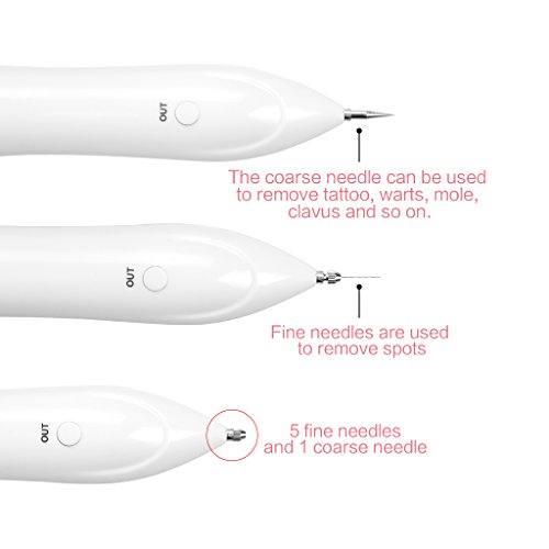 - 3 MODES with 6 NEEDLES--3 kinds of adjustable modes and 6 needles to do different treatment, smart and reliable, Lower level is used on spot and freckle. Strong level is used on mole and skin tags.