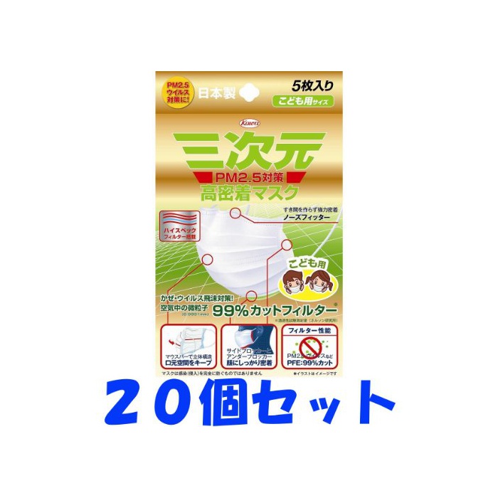 원본상품명:三次元 高密着マスク こども用サイズ PM2.5?? 5枚入り×20個(100枚)