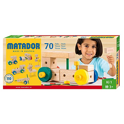-. Feature : Creative 3D Building for ages 3-5! The larger 1.5" x 1.5" blocks have rounded edges and corners and are perfectly suited to their little hands. / Each set has its own assortment of tools: a wooden hammer for assembling the parts, pliers and a wedge to take them apart again. Includes assembly instructions for 20 models - or create your own! / 70 Piece set is a wonderful way to instill creativity, 3-dimmensional thinking and planning along with fine motor skills and intelectual development. / Matador is available for two age groups; Matador Ki (Ages 3 to 5 ) and Matator Classic (Ages 5 Years +). This set is compatible with other models from the Ki collection. / Made of untreated wood from copper beech trees, grown in Austria in environmentally sustainable forests. All parts comply with the very stringent European EN 71 1-11 standard, which specifies safety requirements for toys.