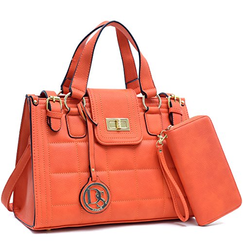 MATERIAL: This Dasein collection designer bag is made from high quality pebbled faux buffalo leather without and chemical smell. Two top buckles and top zip closure and one front flap with twist lock closure give it a luxurious look. Dasein PU leather is 100% vegan, soft and durable. The top handle and the removable and adjustable shoulder strap allows you easily switch between a satchel to a shoulder bag.