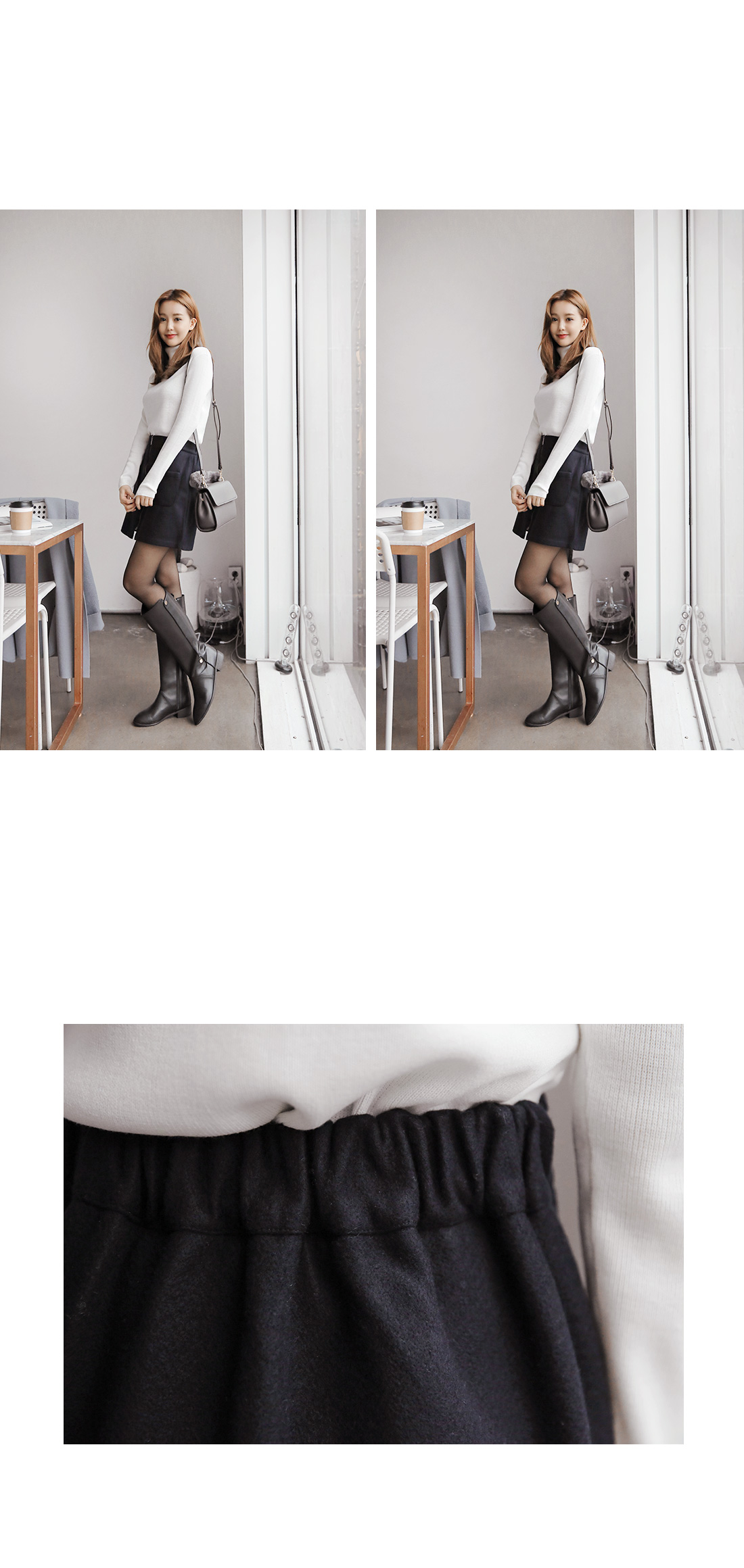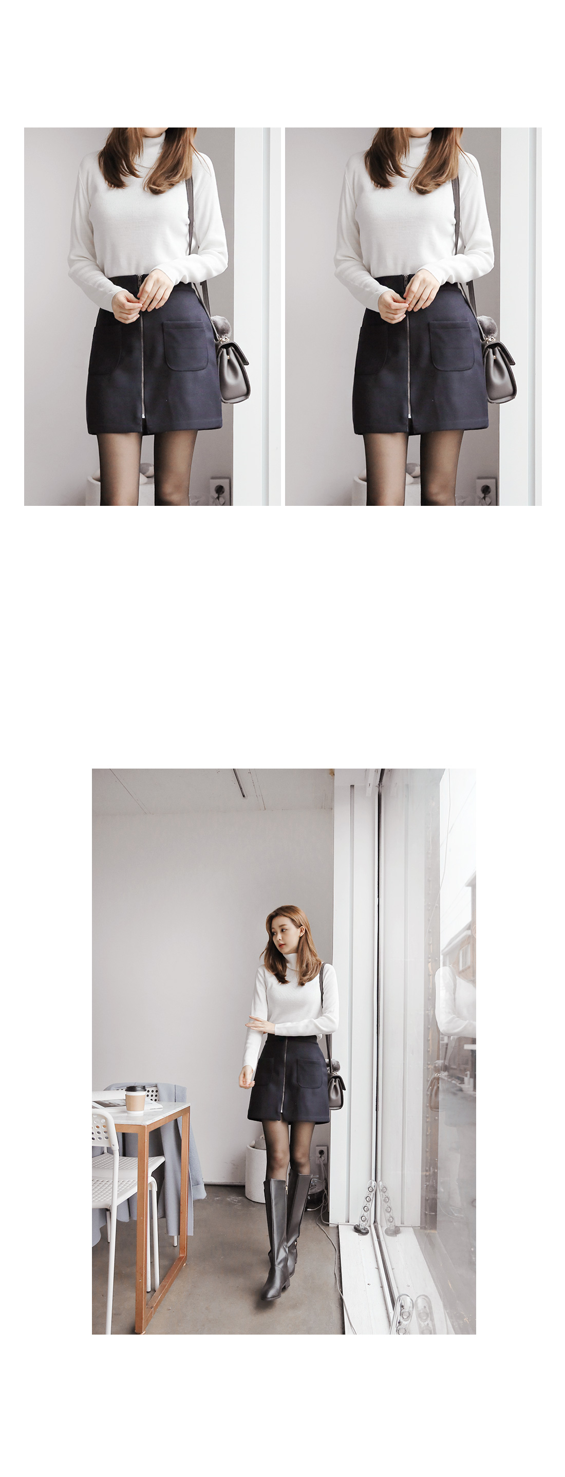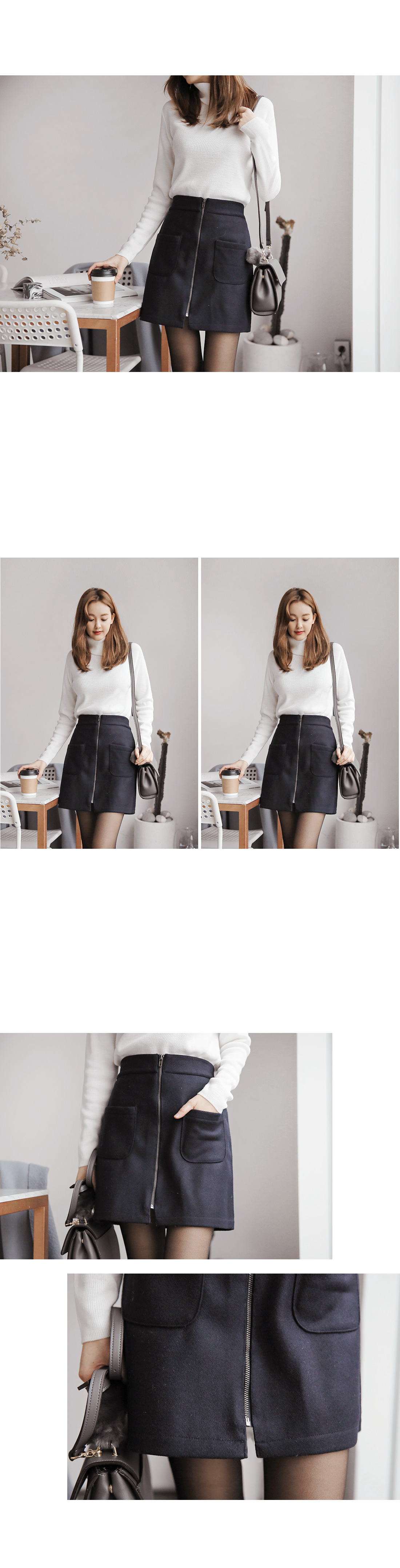 여성스러운 무드의 미니스커트에요! 미니한 기장감으로 날씬한 바디핏을 연출해 주구요, 허리 밴딩으로 착용감까지 편해요~ 프론트에는 아웃포켓으로 실용성까지 챙기면서 프론트 지퍼로 세련된 포인트까지주구요, 모직으로 겨울시즌까지 쭉~ 즐기기 좋은 미니스커트랍니다^^