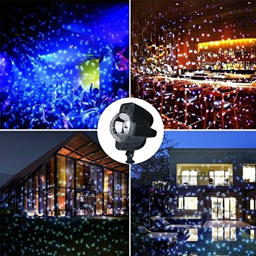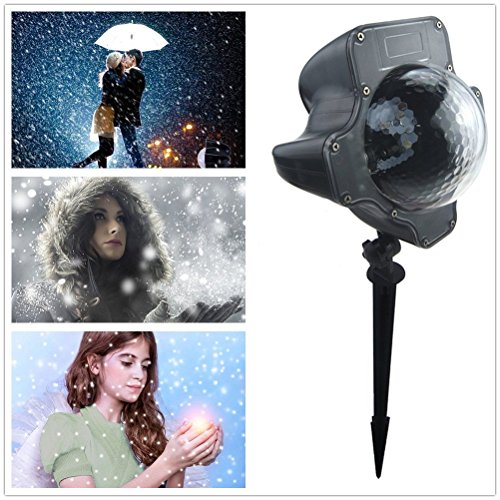- Amazing Snowfall Effect: The most romantic light ever! This snowflake projector can creating a realistic snow scene even not snowing. With a great many of rotating white spots, the pattern looks like snow flurries falling down from the dark sky, perfect design for for Christmas Halloween party wedding holiday garden valentine's day decoration