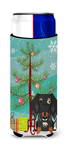 Caroline's Treasures BB4253MUK Merry Christmas Tree Wire Haired Dachshund Dapple Michelob Ultra Hugger for Slim Cans, Multicolor