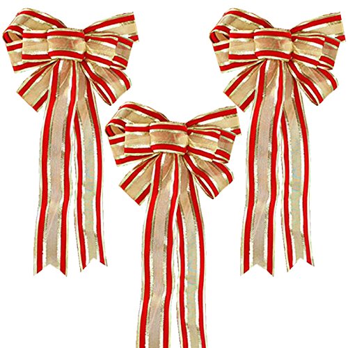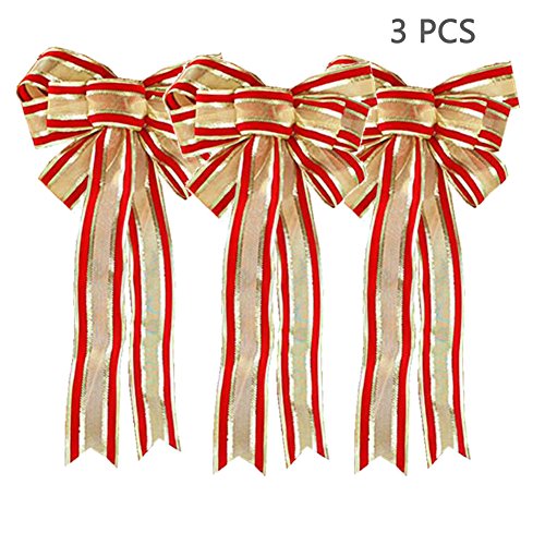 Forusky 3 Pcs 32 x 55 cm Big Christmas Tree Bow Wreaths Decoration Ornaments Ribbon Bows