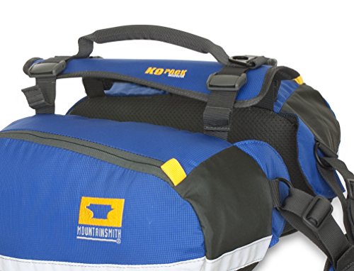 -. Binding : Sports -. Brand : Mountainsmith -. ClothingSize : SM none US Men -. Color : Azure Blue -. Department : Unisex -. Feature : 4-point adjustable chest harness with padded sternum pad / Independently adjustable back harness for custom fit / Two zippered pannier pockets / Single adjustable belly strap / Single haul handle at the top of the pack -. IsAdultProduct : 0 -. Label : Mountainsmith -. Manufacturer : Mountainsmith -. Model : 15-80050-64 -. MPN : 15-80030 -. PackageQuantity : 1 -. PartNumber : 15-80030 -. ProductGroup : Sports -. ProductTypeName : OUTDOOR_RECREATION_PRODUCT -. Publisher : Mountainsmith -. Size : one size -. Studio : Mountainsmith -. Title : Mountainsmith K-9 Dog Pack
