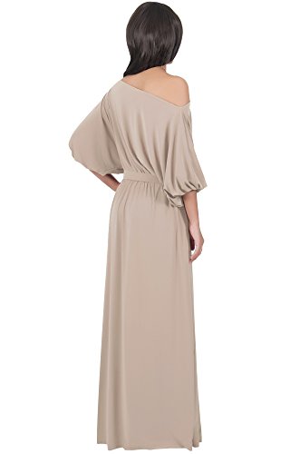 STYLE - Comfortable and loose fitting 3/4 long sleeved Light Brown maxi dresses that can be dressed up or down to suit your mood. This great design can be a casual off the shoulder maxi dress or a semi formal gown when paired with the right accessories. A chic maxi dress by day and Wedding guest or a floor length party gown by night