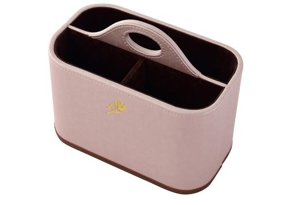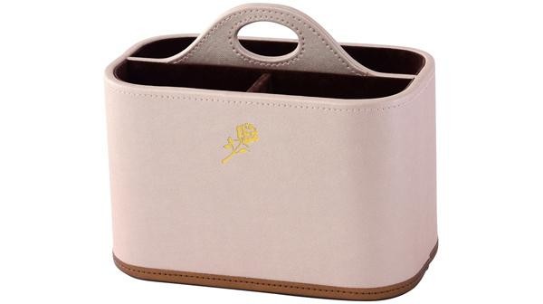 | スマホやメガネ、リモコンなど、傍に置いておきたい小物は華のあるリモコンラックに収納していつもエレガントに。高級感を漂わせるフェイクレザーや、小物を優しく守るベルベットの内生地などこだわりの素材に加えて、ゴールドの箔押しローズやパールピンク×ブロンズのバイカラーのアクセントが華やか&大人シックに魅了します。 |