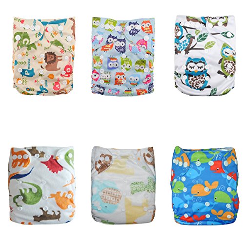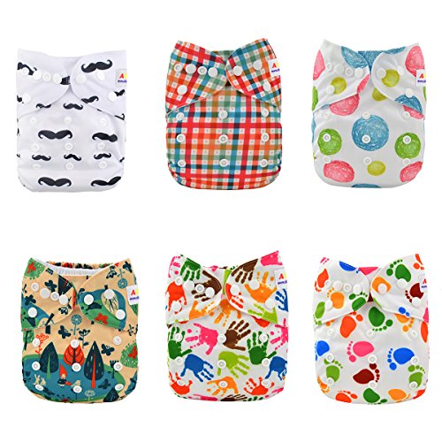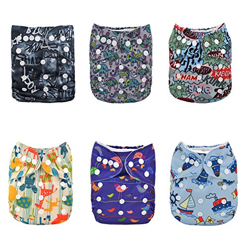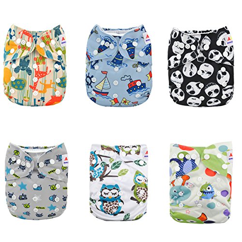 Alva Baby 6pcs Pack Fitted Pocket Cloth Diaper with 2 Inserts Each (Boy Color) 6DM12