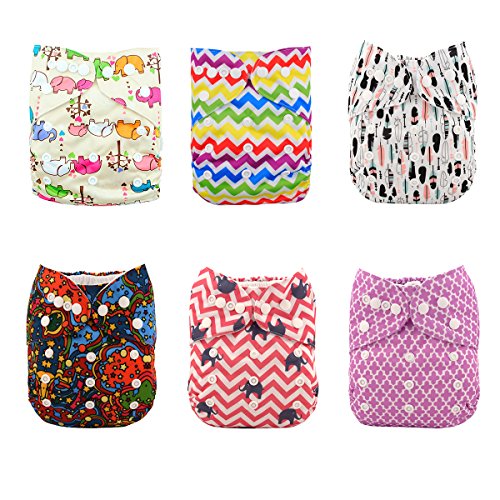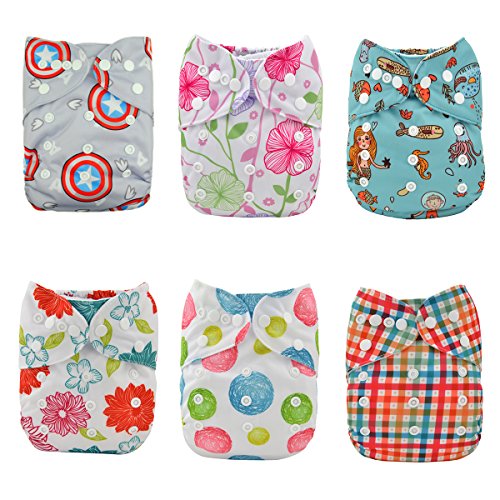 Alva Baby 6pcs Pack Pocket Washable Reusable Cloth Diaper with 2 Inserts Each (Girl Color)6DM13