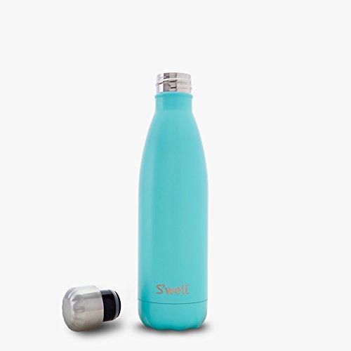 This insulated S'well water bottle will keep a beverage cold for 24 hours or hot for 12. Sleek matte finish. Made from BPA-free, double-walled stainless steel. A vacuum seal keeps liquids and carbonation fresh. Packaged in a cardboard tube for easy gifting.
