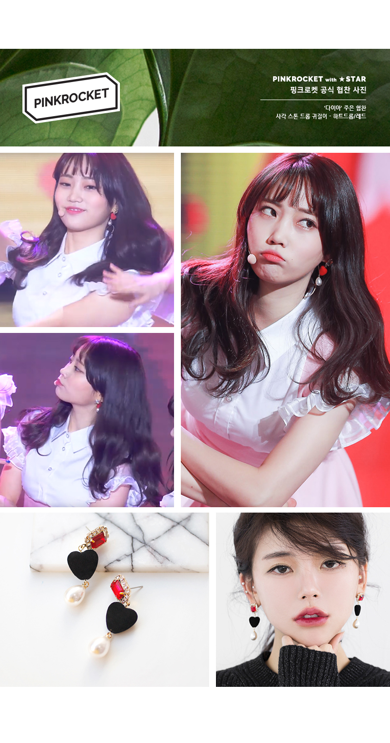 다이아의 기희현은 '사각 스톤 드롭 귀걸이'(진주드롭/피치)를 착용했어요 : )