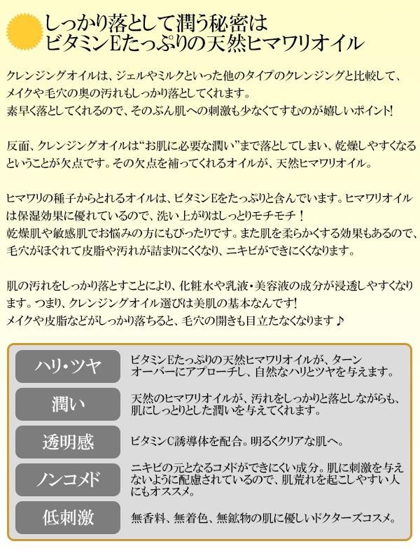 メイク汚れをしっかり落とせるクレンジングオイル。無香料、無着色、無鉱物で肌に優しく、敏感肌の方にもお使いいただけます。 |