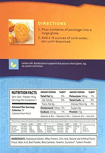 -. Feature : High Protein - 15 grams Per Serving / Low Calorie - 70 Calories Per Serving / Low Carb - 2 grams Per Serving / Sugar Free / Fat Free