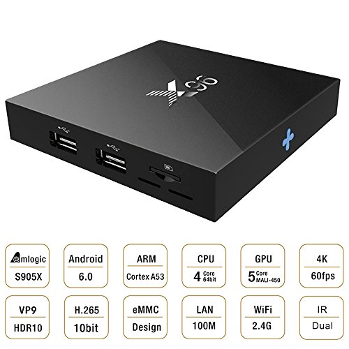 [Advanced OS & High-performance Configuration] Comes with Android 6.0 OS, powered by High-performance Amlogic S905X Quad Core 64 bit Cortex-A53 CPU, includes a Penta-Core Mail-450 GPU that can reach speeds of up to 2.0GHz Ultra high frequency, more than 4 times performance improvements.