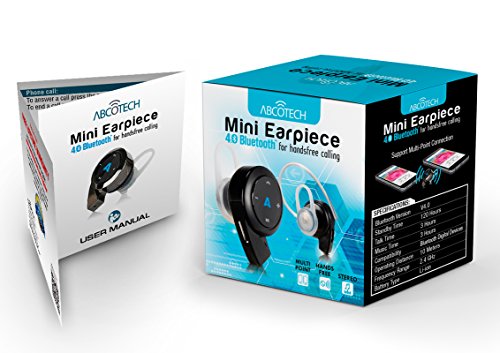 Do you get annoyed of carrying bulky Bluetooth headphones which are difficult to carry, cover your ears and cause discomfort? Have you been using monophonic headset for receiving calls and a separate Bluetooth stereophonic headset for playing Music? Not anymore! High Definition Mini Bluetooth Stereo Headset Abcotech brings to you one of the smallest stereo headsets that allow you to play High Definition music besides receiving phone calls. The speaker is packed with the latest technology to make your life a little easier: Super Small - Comfortable to Use and Easy to Carry, High Definition Superior Quality Sound, Better Call Experience - Digital Signal Processing ensures clarity of outgoing and incoming sound, Easy access to key features through switches provided on the headset, Advanced Noise Cancellation to give you more natural sound, Speaking Call ID - Reports the Incoming call number by voice , Bluetooth 4.0 ensures lower battery consumption, and ease and wide range of connectivity, Dual Standby - Allows you to connect two phones simultaneously, Keeps you informed of the status of Bluetooth - whether pairing or connected What does the package contain? Headset Earphone, Ear Hook, Silicone Ear tips (SML), Collar clip, USB charger cable, User manual Not only these, we also offer you 100% lifetime warranty. So, why think twice?Feature