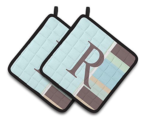 Caroline's Treasures Letter R Initial Monogram - Blue Stripes Pair of Pot Holders CJ1003-RPTHD, 7.5HX7.5W, Multicolor