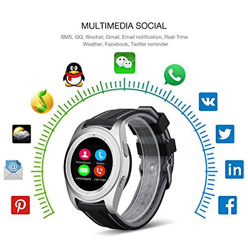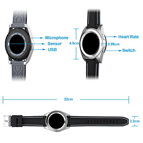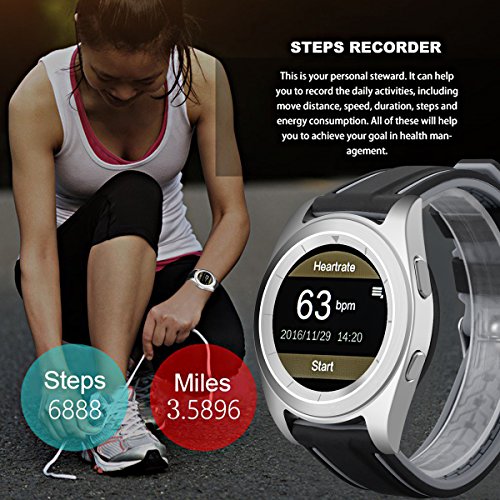 Main Features: ? Heart Rate Monitor: Identify physical condition. Adjust the exercise intensity to achieve the effect of exercise. Please note that the smart watch doesn't support real-time heart rate monitoring. ? Pedometer: Monitor distance, speed, time, steps, calorie consumption to reach your health target. ? Sleep Monitor: Monitor your sleep time and quality, and wake you up by vibration. ? Music Player: Local Music Bluetooth Music. Local music can save in the watch memory and Bluetooth music means playing smartphone music through Bluetooth Connection. All sounds are from watch speaker. ? Remote Notifications: Alerting and Checking all your phone SMS, Facebook, Wechat, Whatsapp messages on the watch when you are inconvenient to check the phone. ? Phonebook: Local contacts Bluetooth contacts. 500 contacts max for Local. All the contacts are from synchronization. ? Standard Time and Military Time: Standard Time and Military can suit different people.