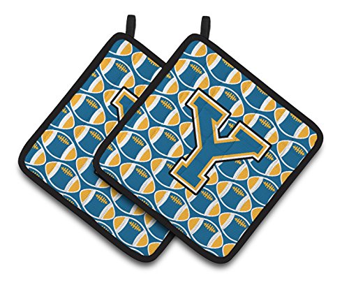 Caroline's Treasures Letter Y Football Blue & Gold Pair of Pot Holders CJ1077-YPTHD, 7.5HX7.5W, Multicolor
