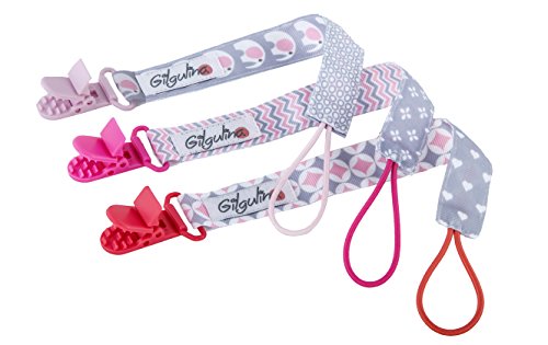 -. Title : Pacifier clip, Quality 3 pack baby pacifier holder, stylish soothie pacifier attacher 2- sided design, Safety pacifier leash & Elastic universal loop + match Gilgulina Pacifier Box, Perfect baby shower gift