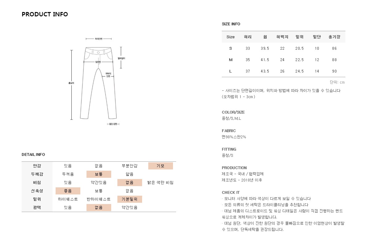 얇게 기모처리가 되어있기 때문에 겨울에도 슬림한 핏으로