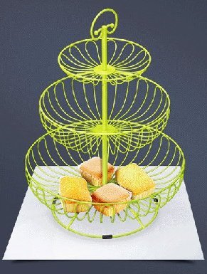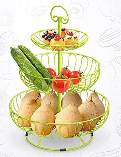 Product DescriptionFruit Bowl BasketDetachableThree TiersHanging StyleWith HandleGreen colorMetal Material0