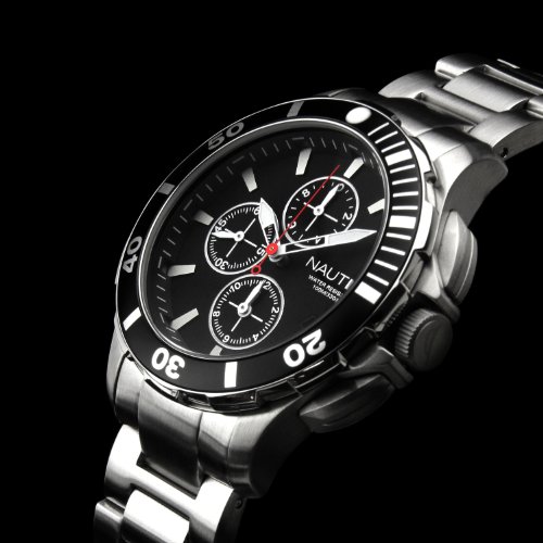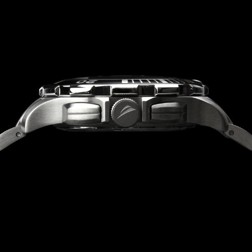 ヘビロテしたくなるベーシックデザインのダイバーズクロノ 『BFD101 ダイブスタイルクロノ・フラッグ』や『BFD101 ダイブスタイルクロノ・マルチ』 とは対照的に、ブラック&ホワイトあるいはネイビー&ホワイトの2トーンの定番カラーによる、スタンダードなダイバーズウォッチのルックスに仕上げた『BFD101 ダイブスタイルクロノ』各ファンクションの機能性やフォルム全体のデザインバランス、ハーフスケルトンの長短針などの要素は、『BFD101 ダイブスタイルクロノ・フラッグ』をベースに、逆回転防止ベゼルに表示されたダイビングスケールの15分間にわたる1分刻みの目盛を指し示す針の視認性を向上させるために、12時・6時・9時のタテ3ツ目のインダイアルを採用しているのが特徴です。基調色であるブラックまたはネイビーと同色のカーフストラップ、あるいはSSブレスレットからセレクトできる『BFD101 ダイブスタイルクロノ』は、いずれもベーシックなダイバーズウォッチの定番デザインを踏襲しながらも、そのシンプルさゆえに、スポーツシーンはもとより日常生活にもマッチします。/ねじ込み式リューズ/スクリューバック/逆回転防止ベゼル/ルミナスハンド&インデックス/日付表示機能/スモールセコンド/1/20秒計/12時間計/腕周り(最大) 約22cmFeature