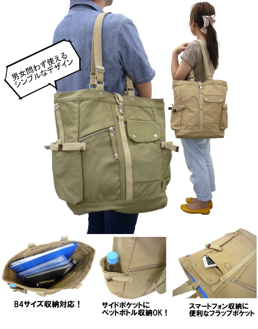 It is a vertical type tote bag of "Canvas Studio CONTROL II series" which can adjust the length of the handle part and the side.