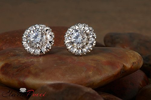 Clara Pucci's 4.8mm AAAAA excellent cut round cubic zirconia stones in pave setting, 1.60 CTW.