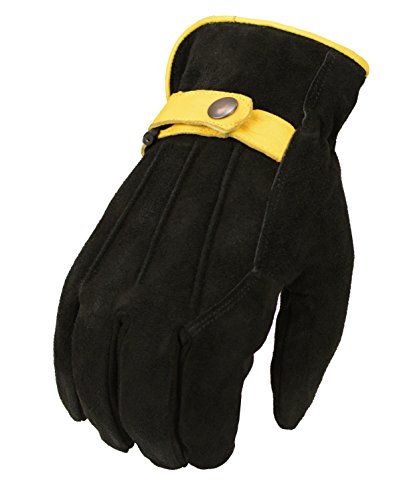 (North American Trading)/Accessories/Cold Weather Accessories/DIRECT FROM USA/Men's Black Deer Suede Thermal Lined Gloves w/ Wrist Strap-BLK/TAN-LARGE