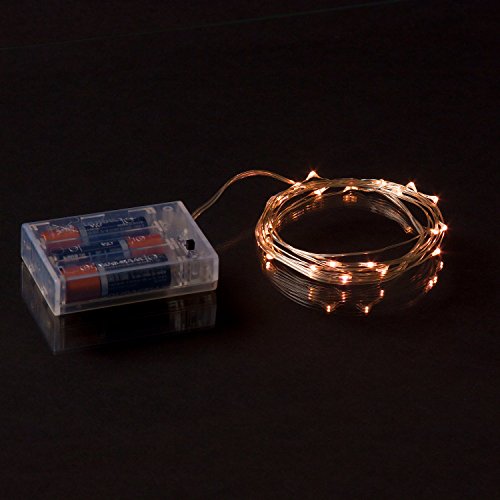 - EXTRA LUMINOUS: 20 Super Bright Warm White Color LED Lights on 6 feet ultra thin silver color wire for indoor and outdoor use. There are 4 inches distance between LED bulbs and 12 inches clear cable between the wire and the battery box. TOTAL STRING LENGTH IS OVER 7 FEET.