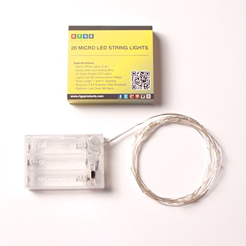 RTGS 20 Warm White Color Micro LED String Lights Battery Operated on 7 Feet Silver Color Wire