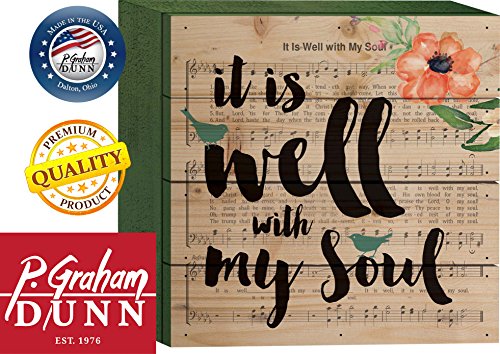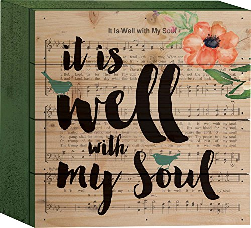 It Is Well With My Soul Faded Music Sheet Floral Watercolor 6 x 6 Wood Plank Design Wall Box Sign