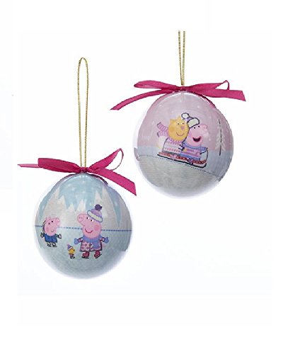 Kurt Adler Peppa Pig Decoupage Christmas Ball Ornament - 2 Assorted: Skating And Sledding