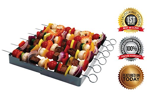 LARGE FRAME & INTERLOCK DESIGN: 16 x 6.8 x 14.5 Includes Stand and 6 Square Locked Shish Kabob Skewers that Prevents Meat From Turning!!