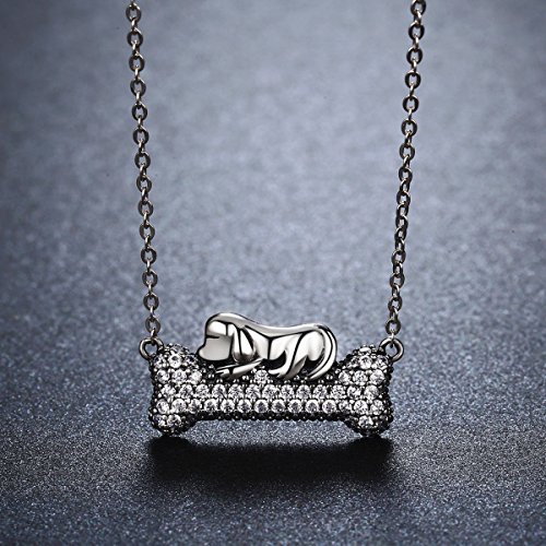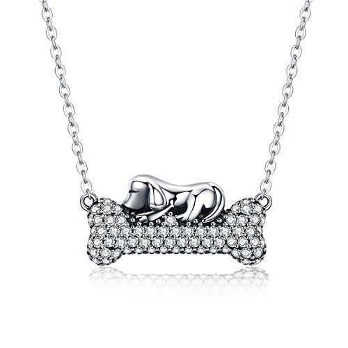 -. Title : JUFU 925 Sterling Silver Dog Doggy's Dream with Bone Pendant Necklaces Women Clear CZ Fine Jewelry