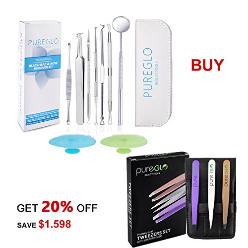 PROFESSIONAL BLACKHEAD EXTRACTION - pureGLO Blackhead and Acne Remover Tweezers Kit is the BEST home solution for blackhead removal and comedone, pimple popping. Swiftly and effectively get rid of pesky blackheads anywhere on your body with no irritation. Reach difficult corners of your body with pureGLO specially crafted extracting tools and regain your natural glowing skin.