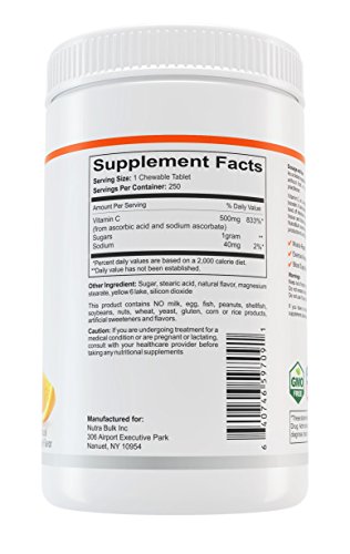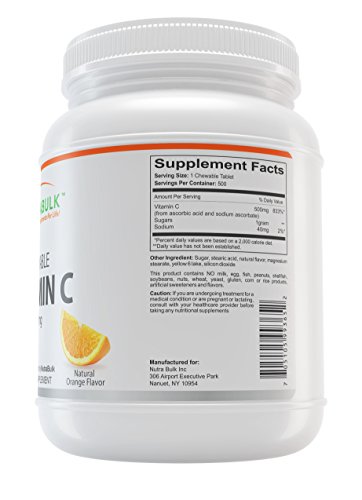 -. Binding : Health and Beauty -. ProductGroup : Health and Beauty -. ProductTypeName : HEALTH_PERSONAL_CARE -. Title : NutraBulk Vitamin C Chewable Tablets 500mg Orange Flavor (250, 500, and 1,000 count)