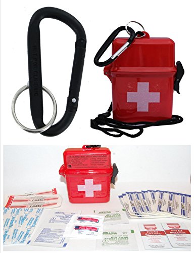 -. Feature : 30 PC Water Proof Mini First Aid Kit with Carabiner / FIRST AID KIT SPECIFICS: 30 PC ELITE FIRST AID WATERPROOF MINI FIRST AID KIT Dimensions: 4.5" x 3" x 1", WITH LANYARD BASIC FIRST AID KIT FIRST AID BOOK KEEP ONE IN THE BOAT, CAR, TRUCK, RV, GO BAG AND BACK PACK / #8 Carabiner 80mm 3+" Aluminum - Not For Climbing / Carabiner Color: Various First Aid Color - Assorted Random (Sorry No Color Choice) / Great for Hiking, Camping, Emergencies Etc