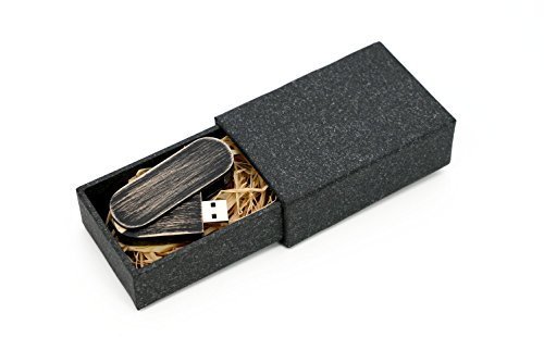 Maple Wood Swivel USB 2.0 8GB Flash Drive - Stained in Nightshade Black - Inserted into Super strong hand made paper box with Raffia grass -
