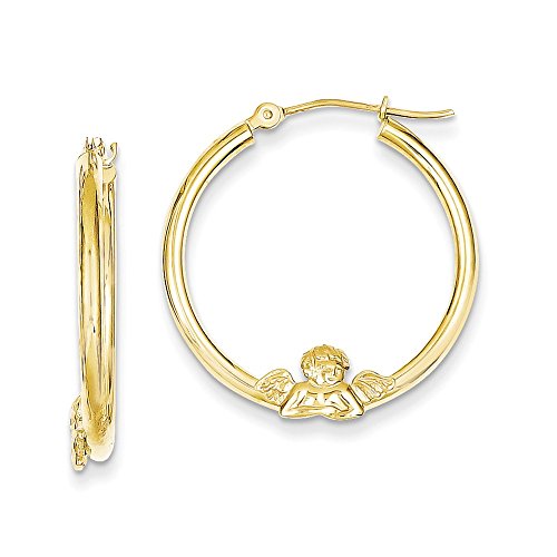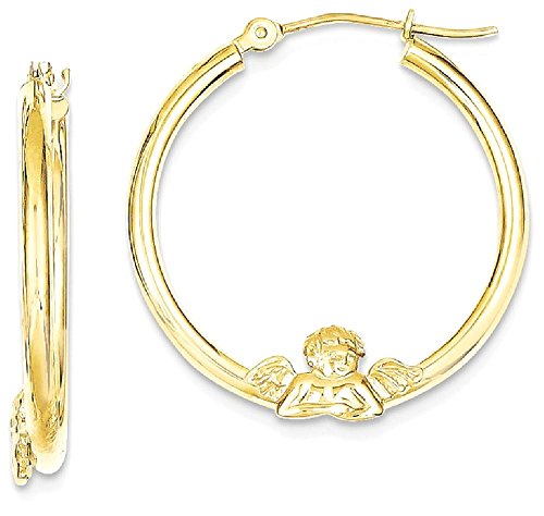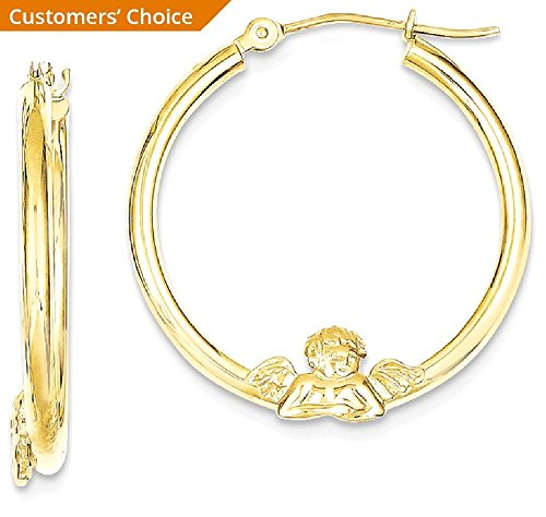 ✅️ ▶▶TOP JEWELRY GIFTS HOLIDAY SALE!!!◀◀ LIMITED SUPPLY ORDER NOW BEFORE IT'S SOLD OUT: Solid 10k Yellow Gold / Length: 20mm / Width: 3mm / Hypoallergenic / Nickel Free / Gifts Jewelry Earrings Hoop Religious Angels