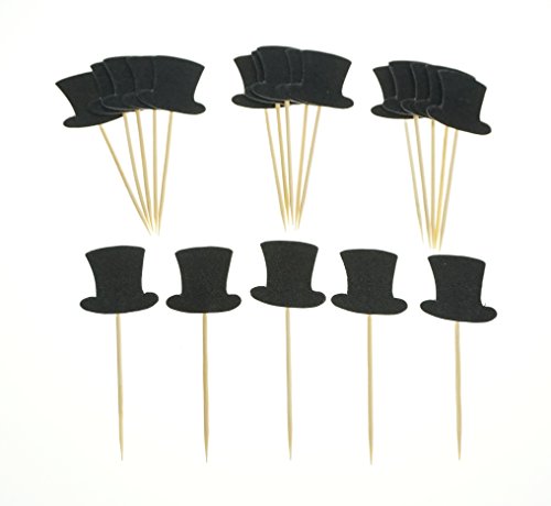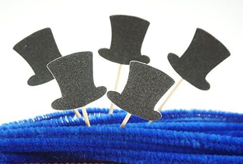 - Package includes 20 glitter black tophat cupcake toppers.