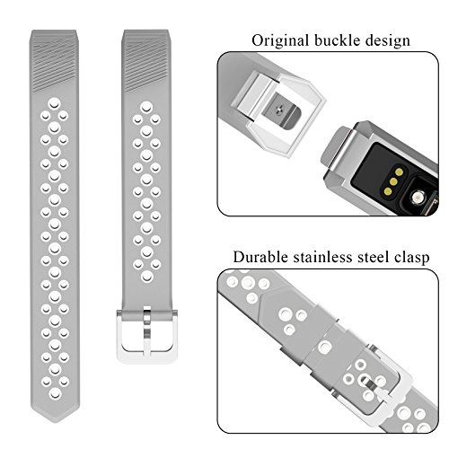 Fitbit Alta HR and Alta Bands Silicone Small (5.5" - 7.5"), Swees Breathable Sport Replacement Bands with Buckle Air Holes for Fitbit Alta HR and Alta Women Men, Black, Grey, White, Red, Silver, Pink
