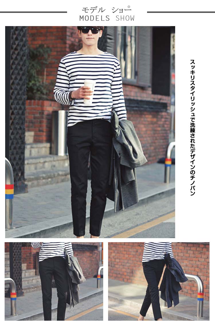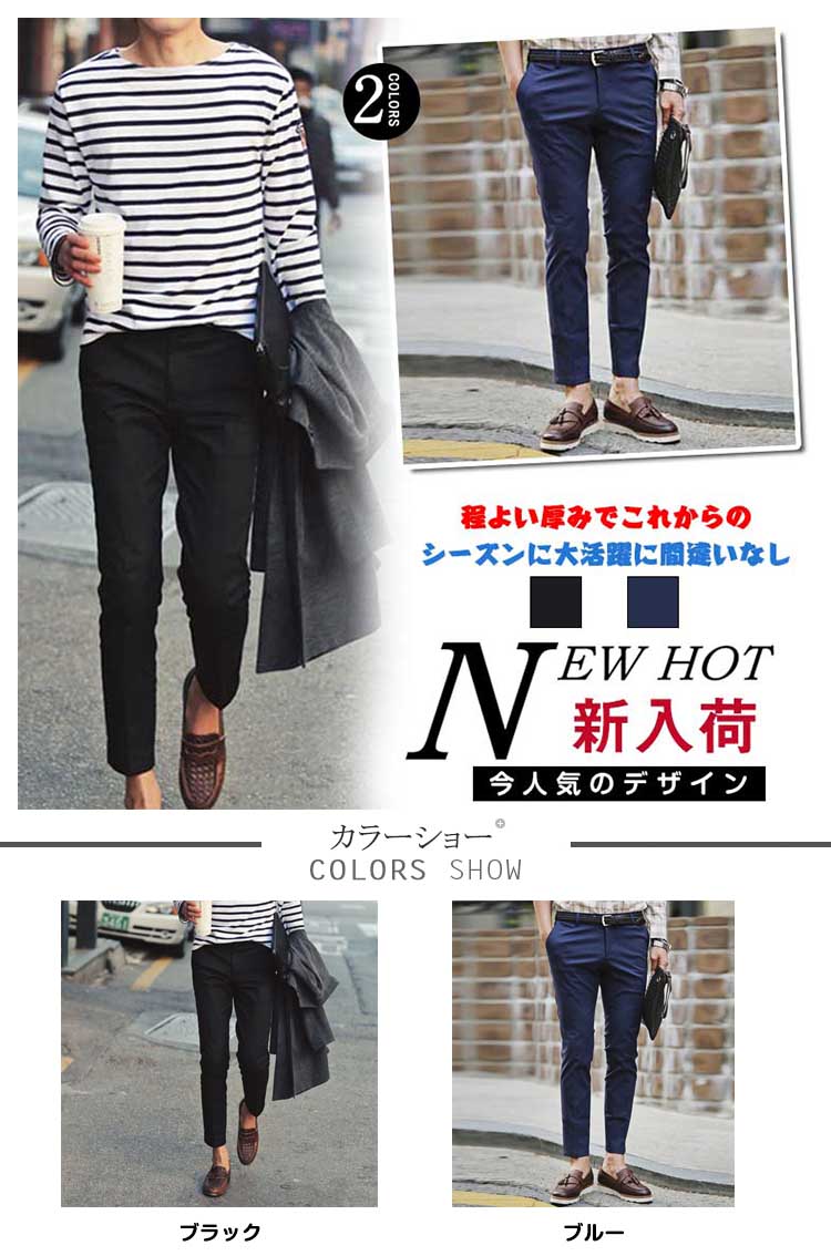 | スッキリスタイリッシュで洗練されたデザインのチノパン絶妙な綿混率なので優れた通気性とサラリとした肌触りが嬉しいポイントヒップラインから裾に掛けて程よくスリムに設計した、やや細身シルエット程よい厚みでこれからのシーズンに大活躍に間違いなし | |