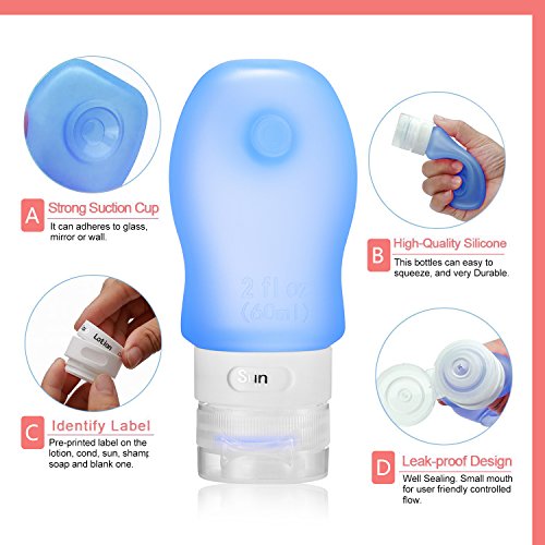 - High Quality and Durable: Our suction cup silicone travel bottles made by medical-grade safety high-quality soft silicone. There are No-toxic chemical odor. This travel bottles set can easy to squeeze, and very Durable.