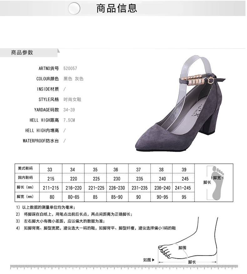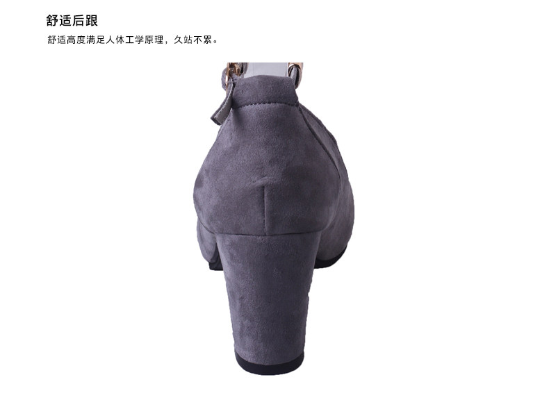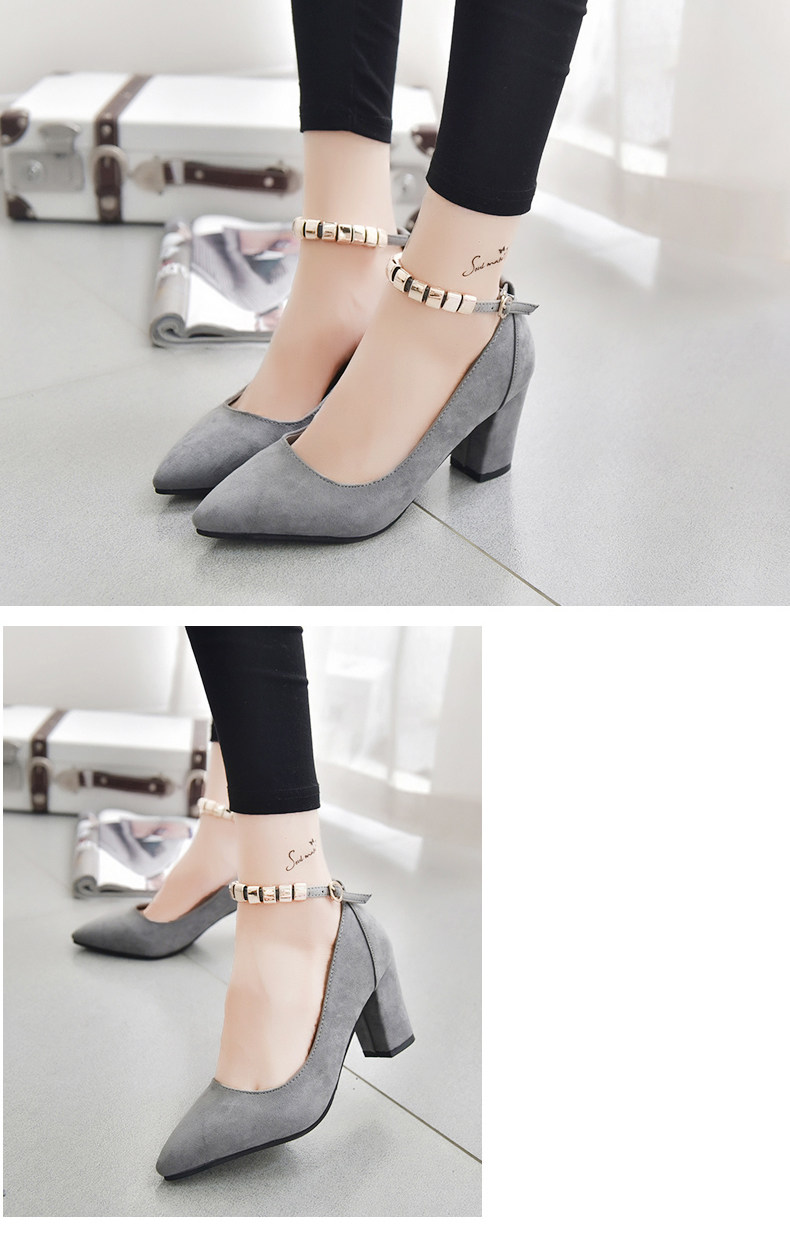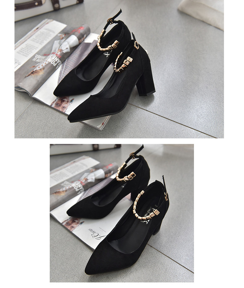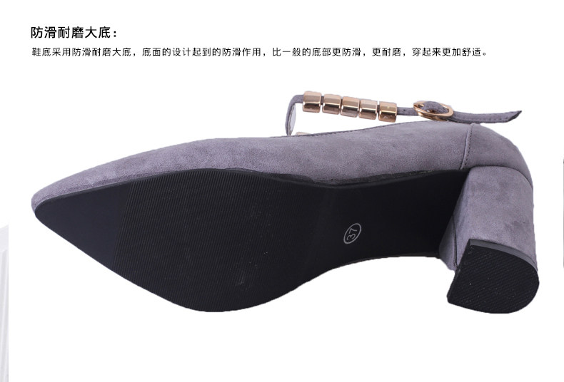 韩版一字扣带粗跟高跟鞋女秋季新款尖头小清新休闲鞋百搭女鞋
